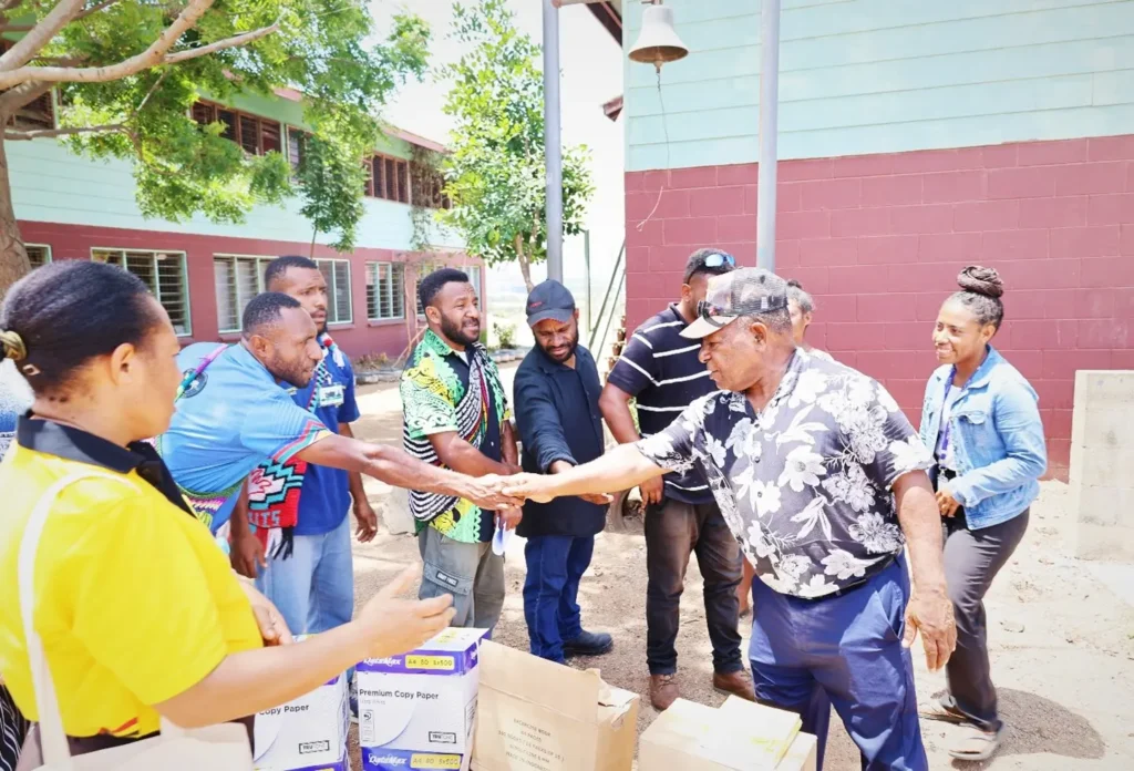 • New Erima Junior High School – 4 cartons of A4 paper reams and 4 cartons of 64-page exercise books.